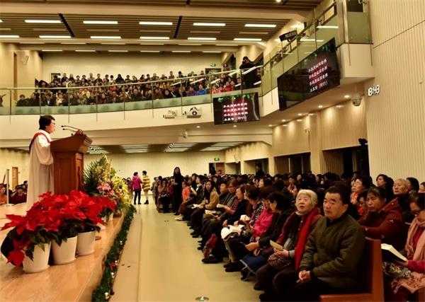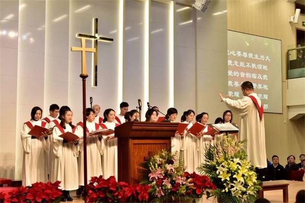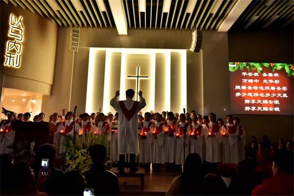 12月24日晚七点,浦东新区福音堂举行了平安夜圣乐崇拜。在宣召、唱诗、祷告和证道中,会众共同庆贺救主耶稣的降生。刘庆友弟兄主礼,田峰牧师证道,讲述了和平之君耶稣给人带来的奇异恩典;晨诗班与晚诗班联合献唱了8首赞美诗,用音乐讴歌颂扬耶稣的伟大奇妙。此次圣乐崇拜有1300名左右弟兄姊妹参加。