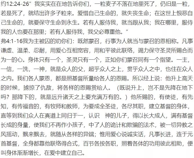 时间第一堂7:30-9:00 第二堂9:30-11:00 第三堂19:00-20:30 讲题治死老我 (五) 证道田 峰 牧师 主礼林闽加 弟兄(晨)/瞿眀蔚 姊妹(晚) 诗歌补14、补154、365 经文约12:24-26 弗4:1-16