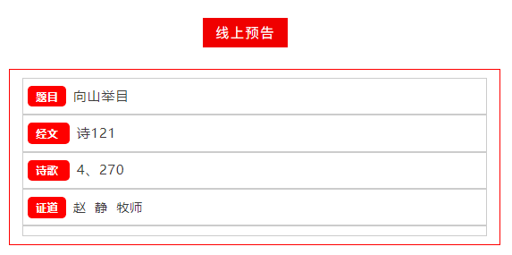 主日线上礼拜预告